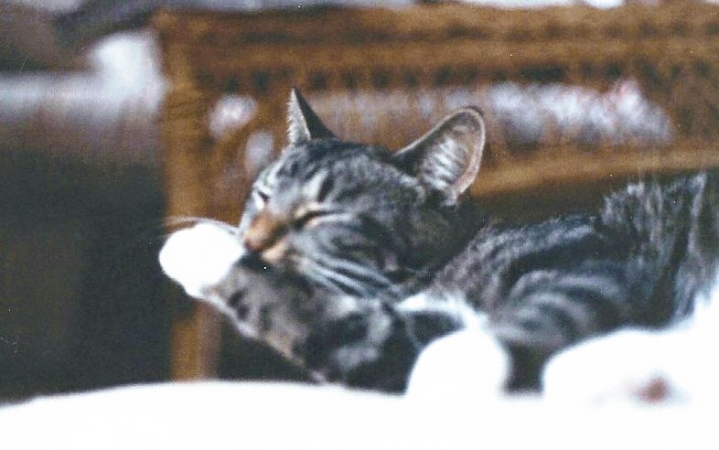 I had been on my own for some time, and had gone with a friend that particular Saturday in January, 1987 to find her an apartment. We walked into the leasing office and while she was working with the leasing agent, I went in sat in front of the fire. It was a cold that day. While I sat there mesmerized by the fire, I noticed a beautiful cat sauntering in like she owned the place. She jumped on on the over-sized chair that was closer to the fire, made a circle, looked at me then started swishing her tail. I made a comment to the leasing agent, “What a cool cat.” The leasing agent said, “Do you want her? The family she was with went off and left her and she doesn’t have a home.” I thought about half a second and said, “Yes, I do, and I shall provide a home for her. I can’t believe people just running off and abandoning their pet. Well, she is mine now.” I thought my new cat was a he. It made no difference I was the proud new mama of a cat; and I had no idea about cats.