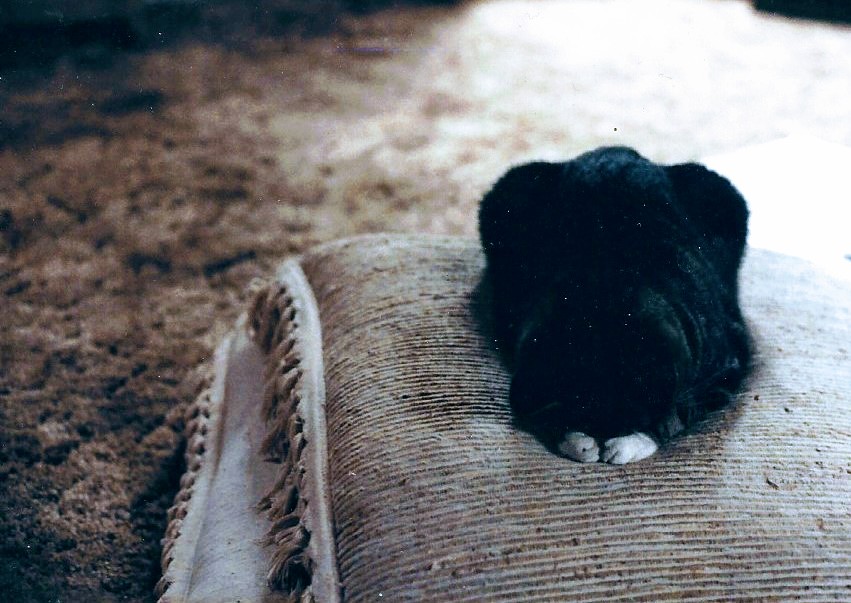Depechemode and I grew to love one another in our own way. I did not find out about he being a she for another year when I took her to vet for shots. So, he became a she. Pescher was leery at first, not knowing about the the woman that she now owned. When she wanted love, she came and got it. I learned that she does not like to be petted and respected that. Pescher was with me for another 18 years until she became very ill and I choose not to let her suffer any longer. She was her own and remained cool to the very end. I came across this picture of her, and I smiled fondly remembering these days. Her name morphed with her over the next 18 year from Depechemode, to Pescher and finally Pesche.